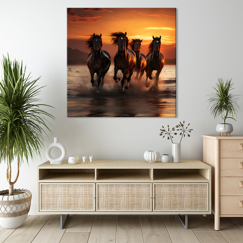 Mustang Horses Running On Seashore | Animal Wall Art | Single Panel
