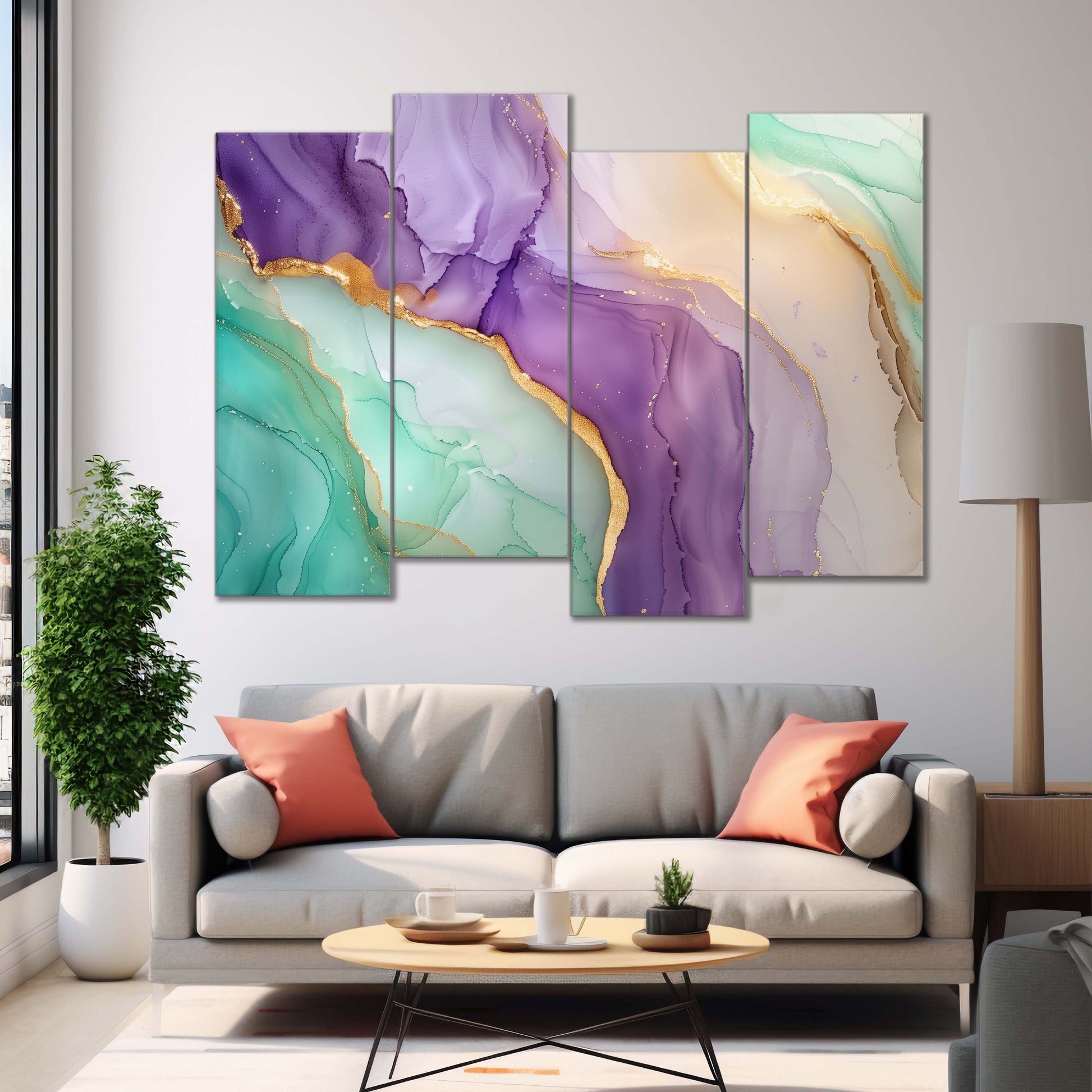Teal & Purple Serenade Swirls | Abstract Wall Art | 4 Panels